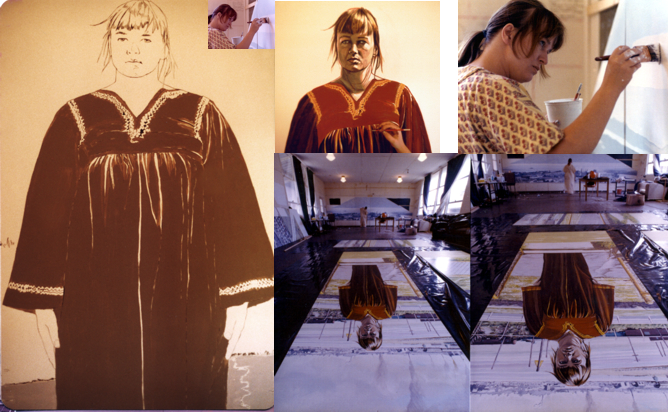 My mother M.D.Hansen modeled for this mural.It was the best portrait I'd painted of her.The night I painted her was a all nighter.I remember playing Wagner operas' on full blast ,and crying for most of the time.It was painted on a panel, I was standing on a table in a old class room alone with my thoughts and music.