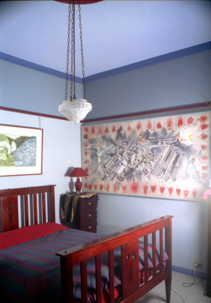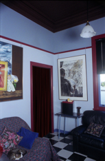 When I have found and processed more images from Carrington I will be able to put this page into order. the walls were made from old horse hair and they did cracked badly during the earth quake. The ceiling were timber and yes eventually they were missioned browned. I was always able to make the house look ok with my paint brush and detail. My father had stripped back the stair case with patience and methio, his master carpenter