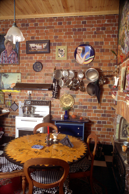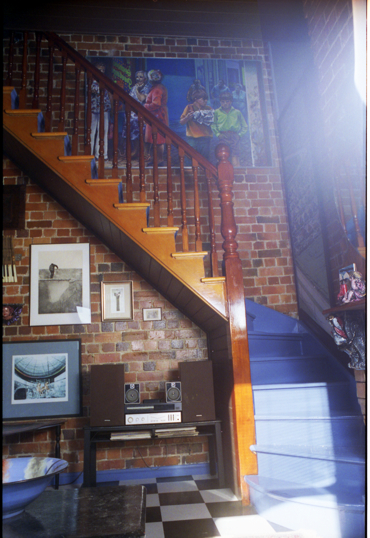 We moved to Carrington in late 1976.We rented 108 for about 12 months before we brought it and lived in that side. We brought 104-6 a few years later as basically a shell, no working facilities the old tenants still washed their clothes in a copper.It had been a run down cafe the Rosdale cafe. I used the front as a studio and the back old kitchen and bathroom was Allen's darkroom.It had a old tin shed attached.It was 14 years before I had the money to fix it up.These photos are after the last renovation and when my son Simon and I lived here. A upstairs bathroom was heaven after years of having to use a outdoor loo.